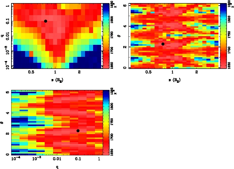 | tE(day) | q | s | α(radian) | ρ | χ² |