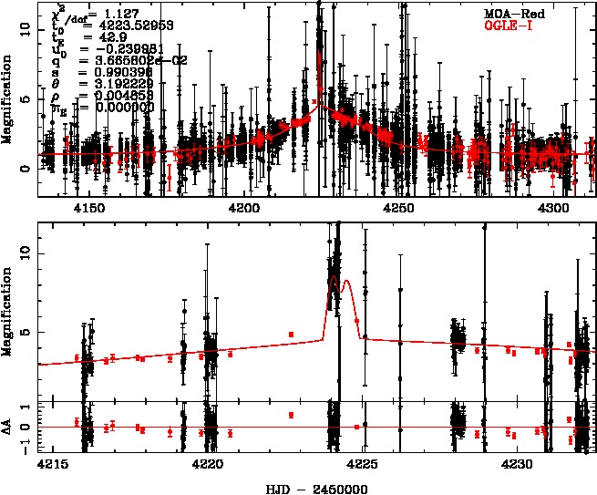 | tE(days) | 42.92 ± 1.00e+00 | 43.06 ± 1.78e+00 | 61.75 ± 2.98e+00 | 61.09 ± 2.98e+00 |