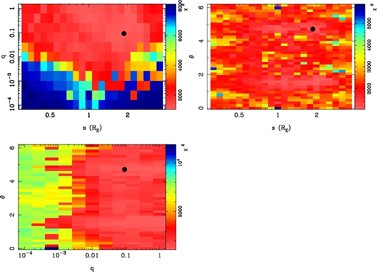| tE(day) | q | s | α(radian) | ρ | χ² |