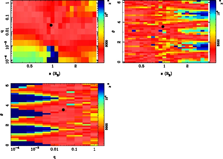 | tE(day) | q | s | α(radian) | ρ | χ² |
