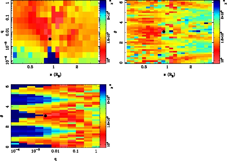| tE(day) | q | s | u0 | α(radian) | ρ | πE,N | πE,E | χ² |