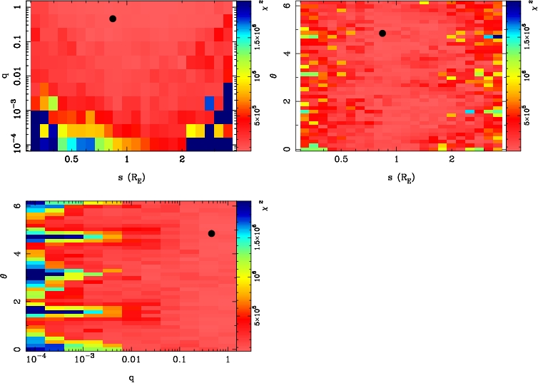 | tE(day) | q | s | α(radian) | ρ | χ² |