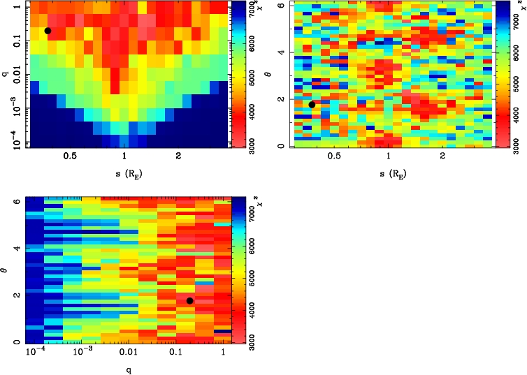 | tE(day) | q | s | α(radian) | ρ | χ² |