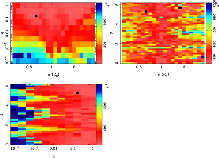| tE(day) | q | s | α(radian) | ρ | χ² |