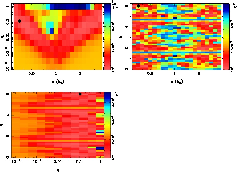 | tE(day) | q | s | α(radian) | ρ | χ² |