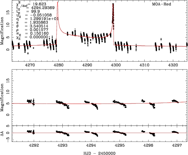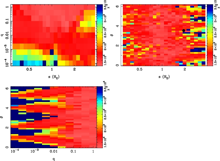 | tE(day) | q | s | α(radian) | ρ | χ² |