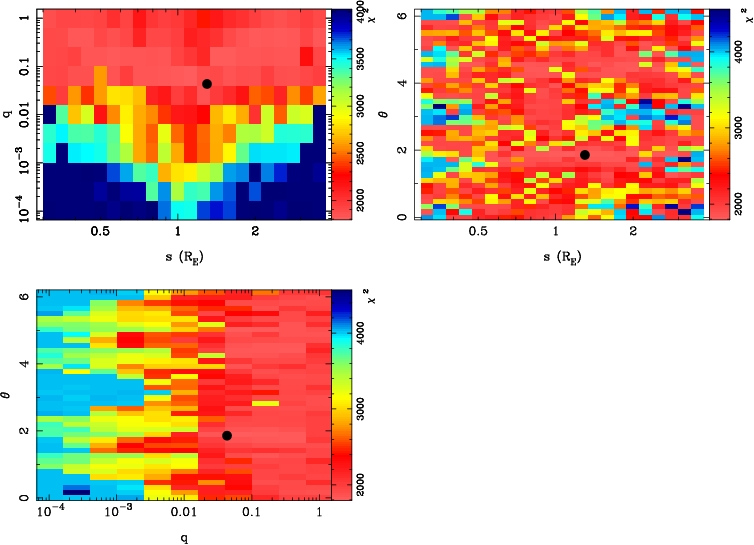 | tE(day) | q | s | α(radian) | ρ | χ² |