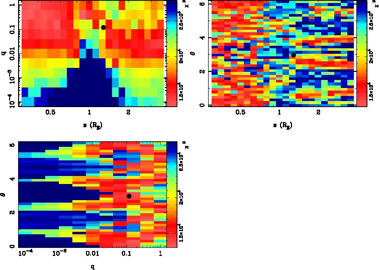 | tE(day) | q | s | u0 | α(radian) | ρ | πE,N | πE,E | χ² |