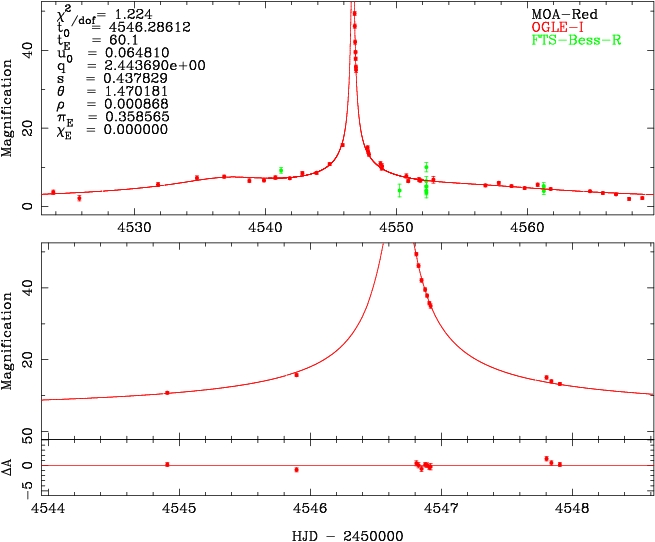| tE(day) | q | s | α(radian) | ρ | χ² |