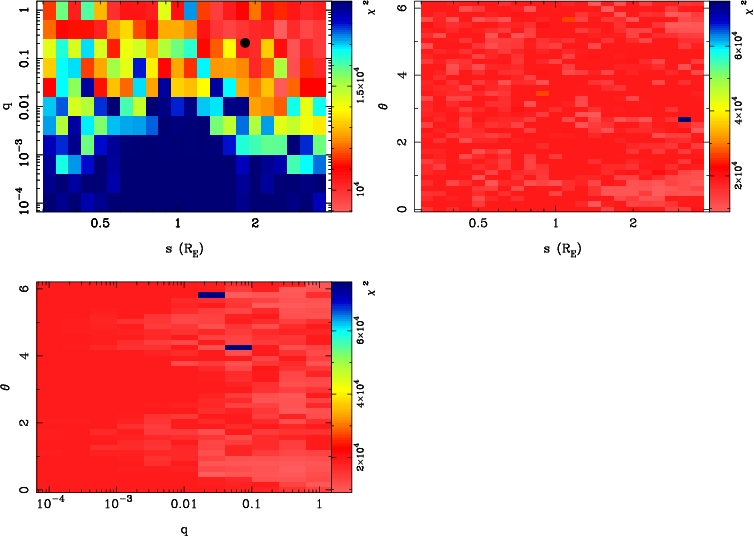| tE(day) | q | s | α(radian) | ρ | χ² |