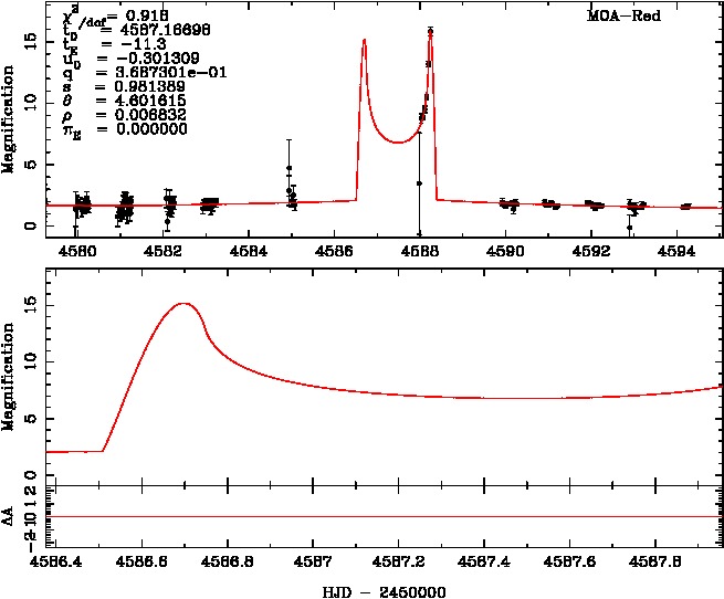 | t0(HJD-2450000) | tE(day) | q | s | u0 | α(radian) | ρ | χ² |