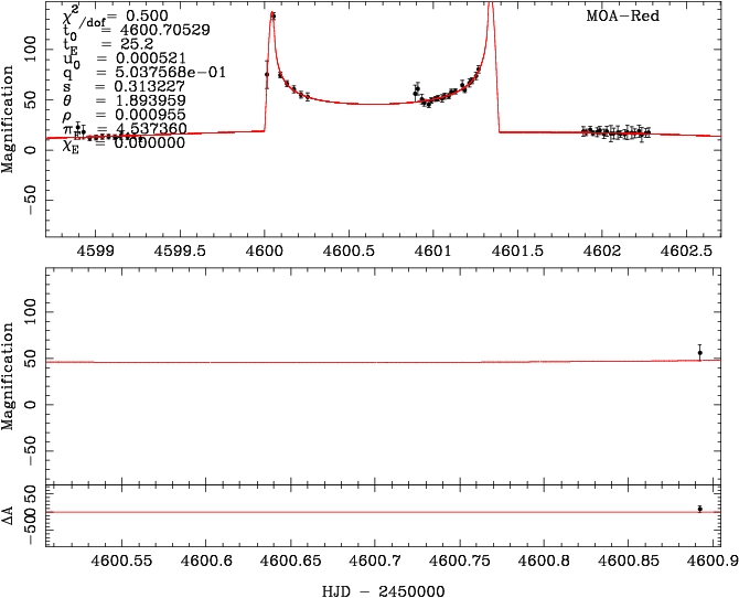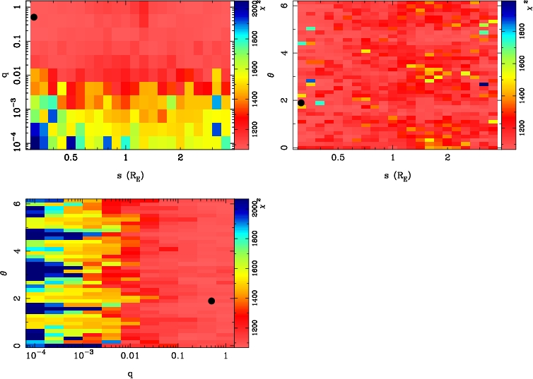 | tE(day) | q | s | α(radian) | ρ | χ² |