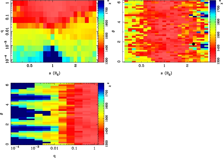 | tE(day) | q | s | α(radian) | ρ | χ² |