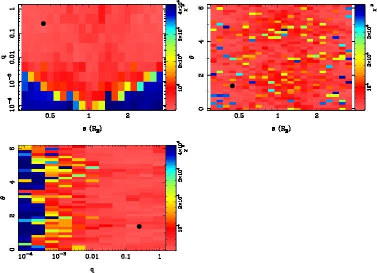 | tE(day) | q | s | α(radian) | ρ | χ² |