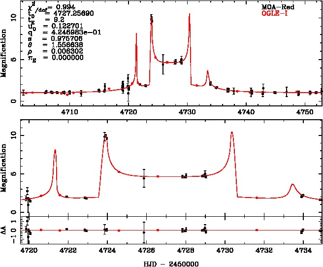 | t0(HJD-2450000) | tE(day) | q | s | u0 | α(radian) | ρ | χ² |