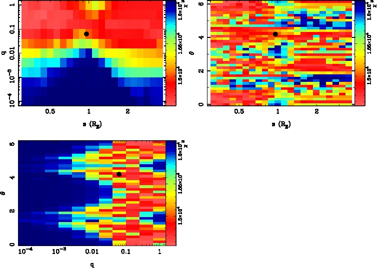 | tE(day) | q | s | α(radian) | ρ | χ² |