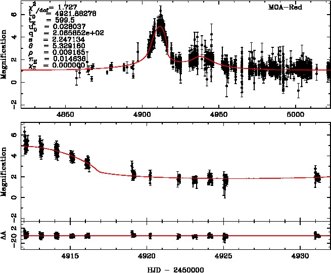 | tE(day) | q | s | α(radian) | ρ | χ² |