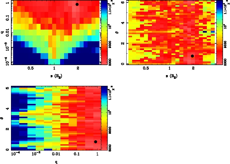 | tE(day) | q | s | u0 | α(radian) | ρ | πE,N | πE,E | χ² |