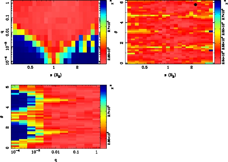 | tE(day) | q | s | α(radian) | ρ | χ² |
