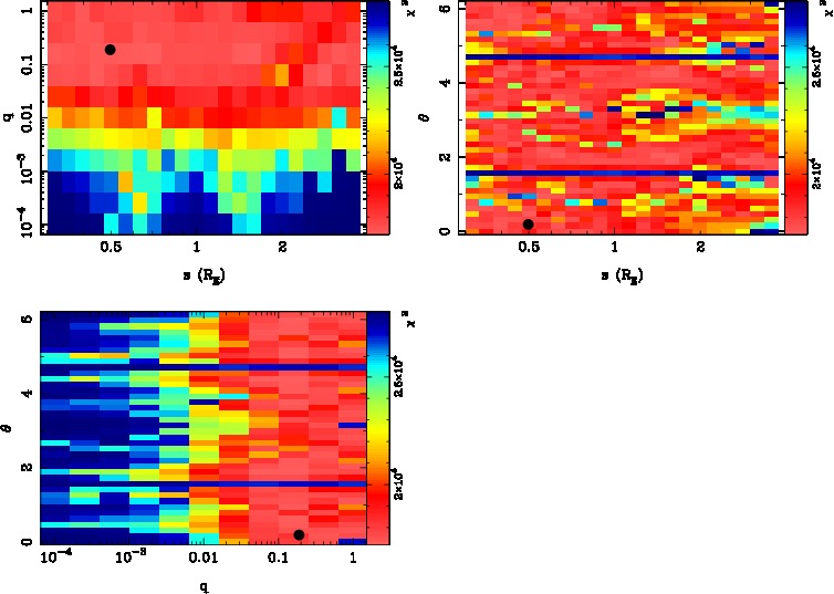 | tE(day) | q | s | α(radian) | ρ | χ² |