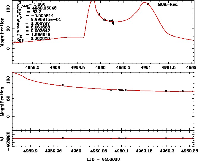 | tE(day) | q | s | α(radian) | ρ | χ² |