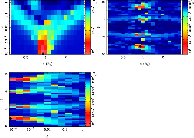| tE(day) | q | s | α(radian) | ρ | χ² |