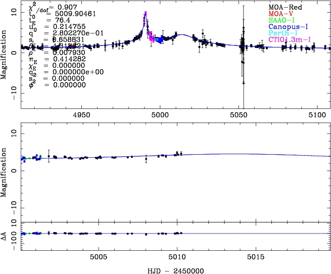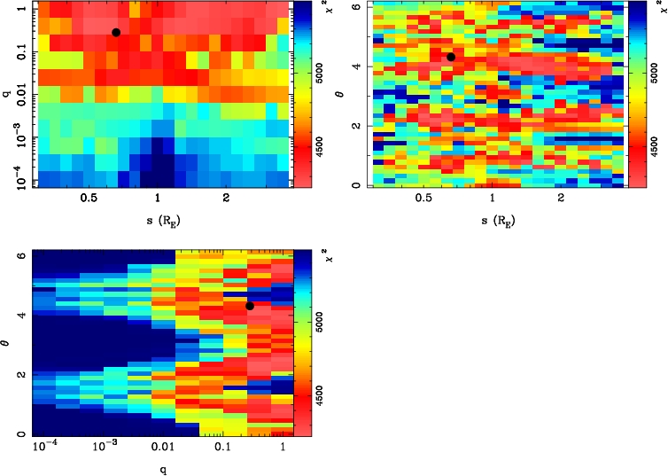 | tE(day) | q | s | α(radian) | ρ | χ² |