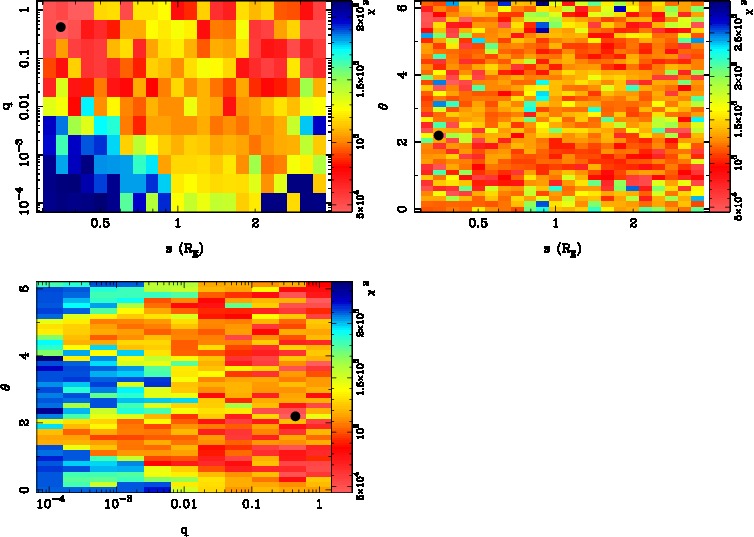 | tE(day) | q | s | α(radian) | ρ | χ² |