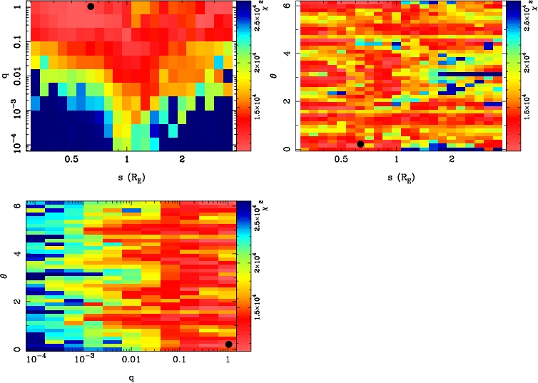 | tE(day) | q | s | α(radian) | ρ | χ² |