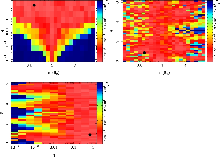 | tE(day) | q | s | α(radian) | ρ | χ² |