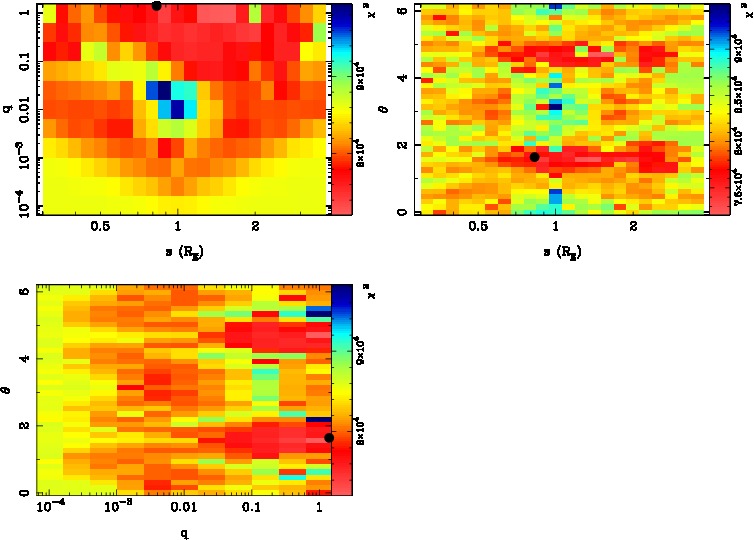 | tE(day) | q | s | α(radian) | ρ | χ² |