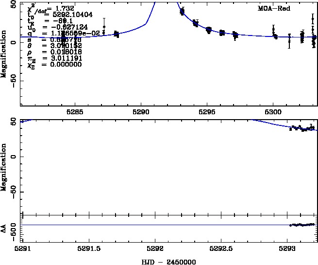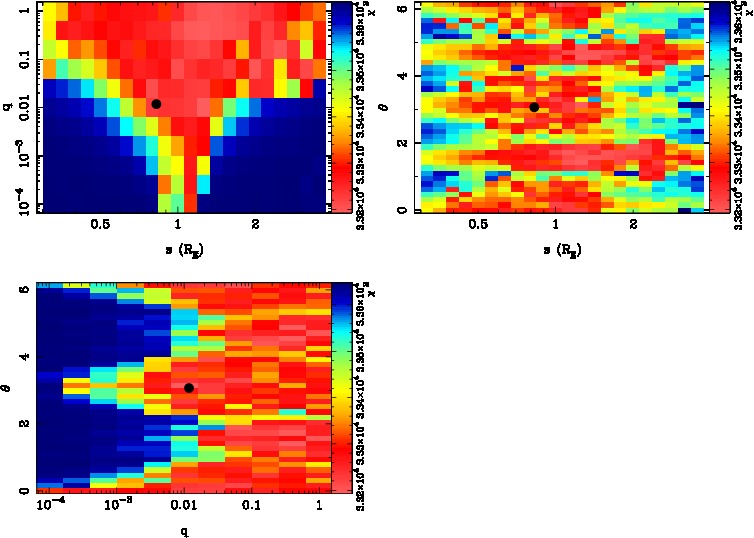 | tE(day) | q | s | α(radian) | ρ | χ² |