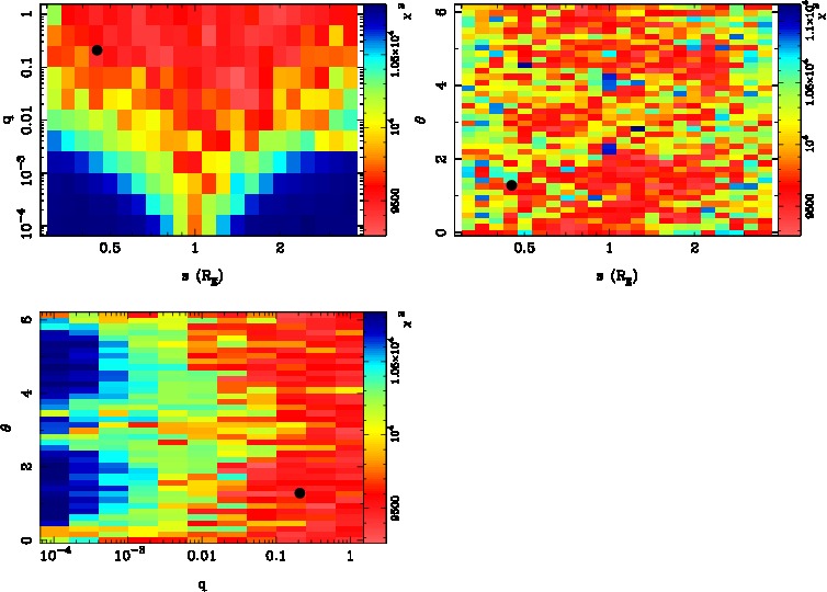 | tE(day) | q | s | α(radian) | ρ | χ² |