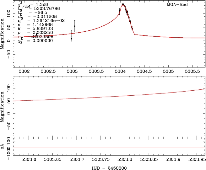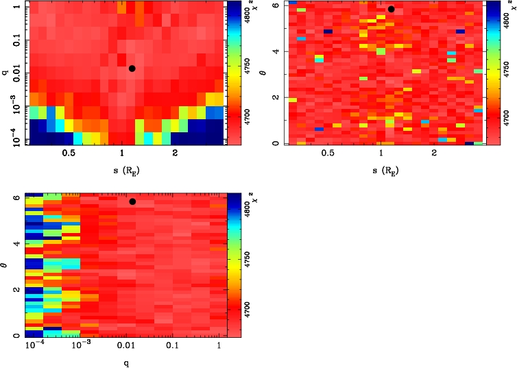 | tE(day) | q | s | α(radian) | ρ | χ² |