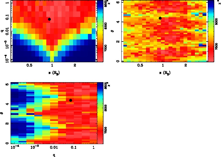 | tE(day) | q | s | α(radian) | ρ | χ² |