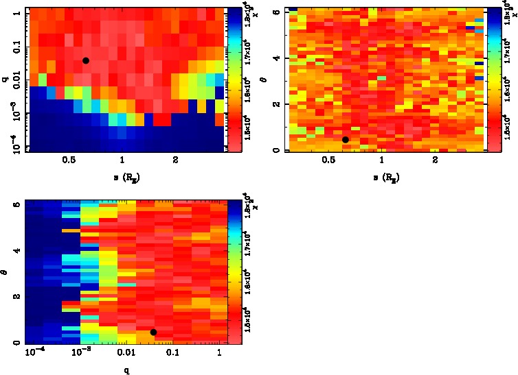 | tE(day) | q | s | α(radian) | ρ | χ² |