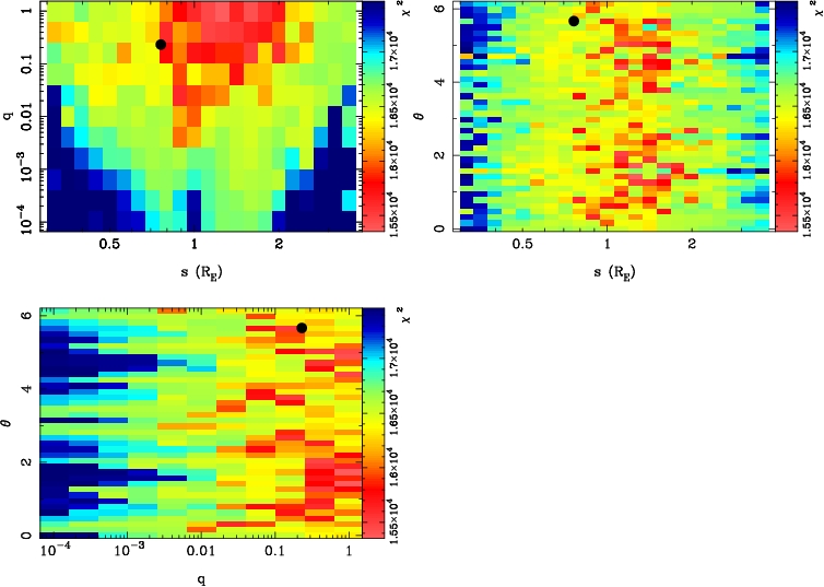 | tE(day) | q | s | α(radian) | ρ | χ² |