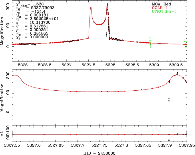 | tE(day) | q | s | α(radian) | ρ | χ² |