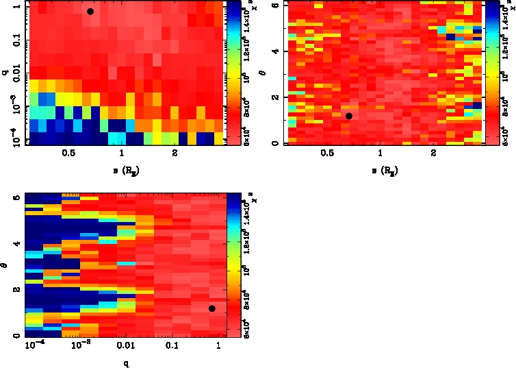 | tE(day) | q | s | α(radian) | ρ | χ² |