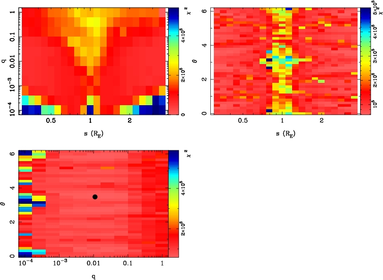 | tE(day) | q | s | α(radian) | ρ | χ² |