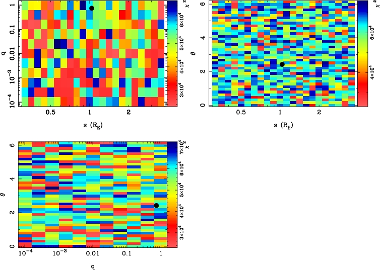 | tE(day) | q | s | α(radian) | ρ | χ² |