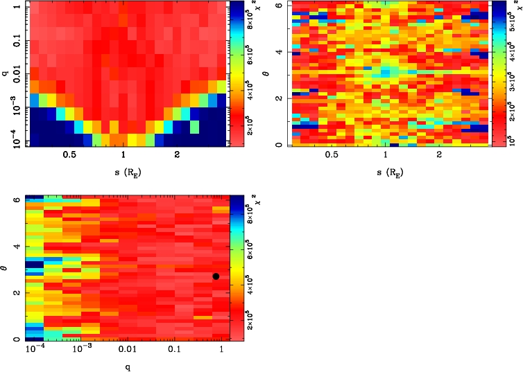 | tE(day) | q | s | α(radian) | ρ | χ² |
