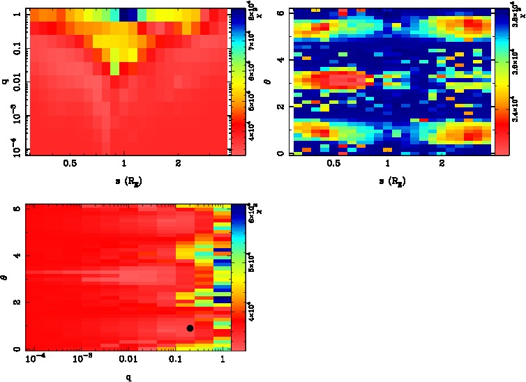 | tE(day) | q | s | α(radian) | ρ | χ² |