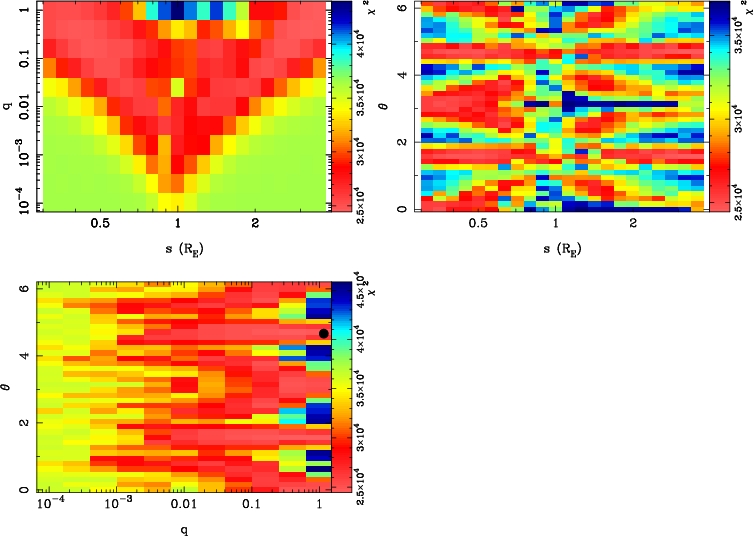 | tE(day) | q | s | α(radian) | ρ | χ² |