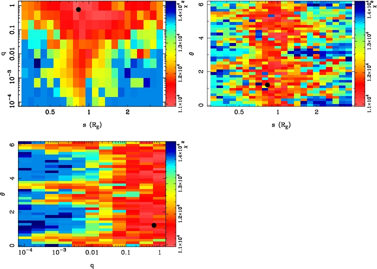 | tE(day) | q | s | α(radian) | ρ | χ² |