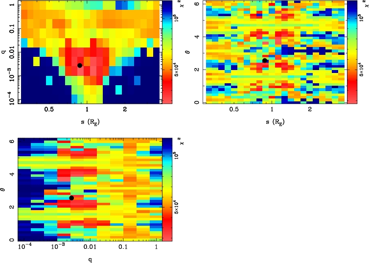 | tE(day) | q | s | α(radian) | ρ | χ² |