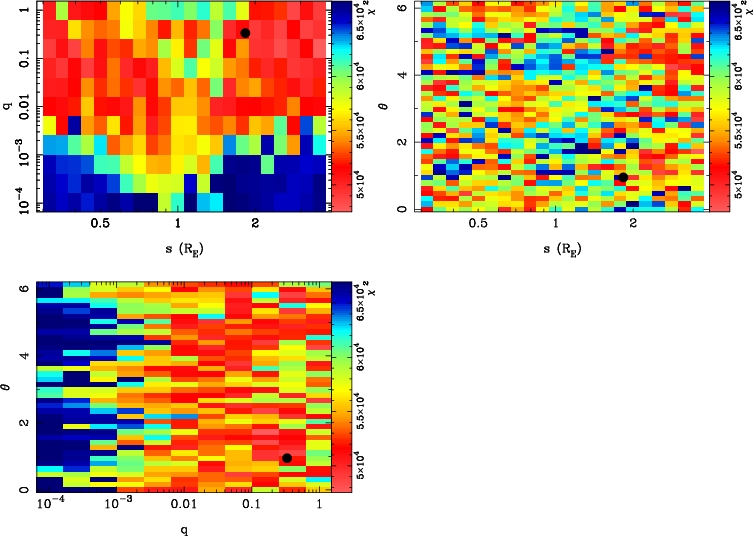 | tE(day) | q | s | α(radian) | ρ | χ² |