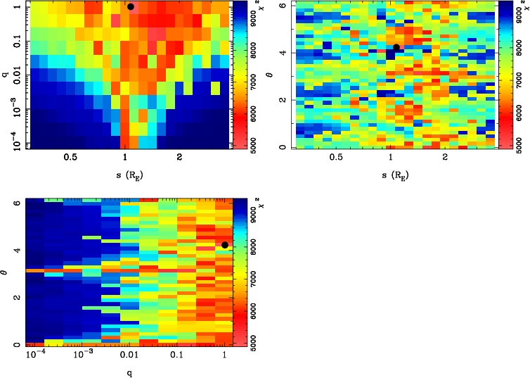 | tE(day) | q | s | α(radian) | ρ | χ² |