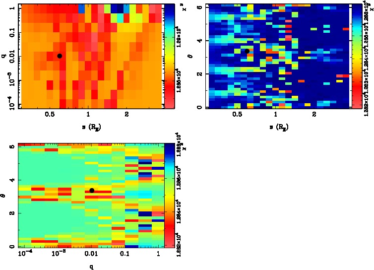 | tE(day) | q | s | α(radian) | ρ | χ² |