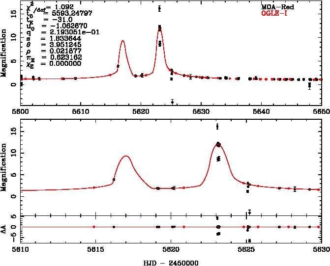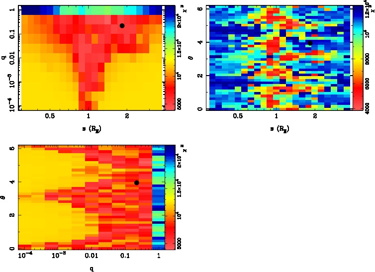 | tE(day) | q | s | α(radian) | ρ | χ² |